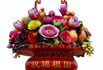 慶祝國(guó)慶節(jié)彩繪仿真大花籃雕塑