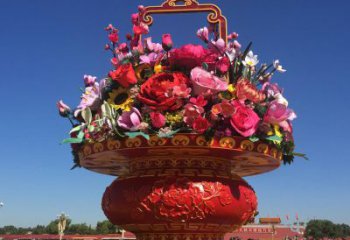 天安門廣場(chǎng)精美玻璃鋼彩繪大花籃雕塑