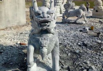 大理石石雕麒麟,古典庭院裝飾精美大型雕塑