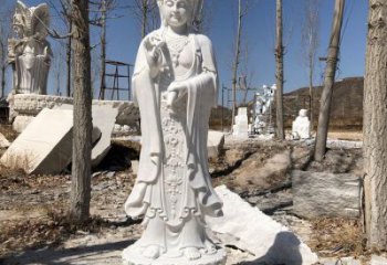 經(jīng)典傳統(tǒng)工藝精致大理石浮雕觀音站神像擺件