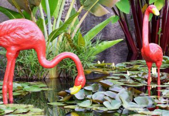 玻璃鋼火烈鳥雕塑,用以景區擺放的大型裝飾品