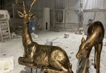 玻璃鋼仿銅小鹿擺件,戶外草坪動物模型