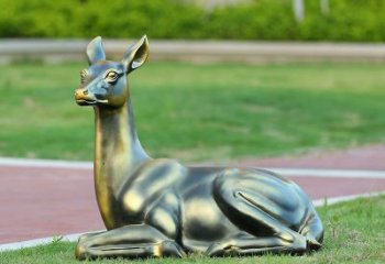 不銹鋼仿銅睡鹿雕塑,點綴戶外廣場草坪