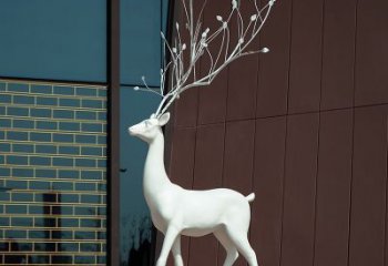 玻璃鋼制戶外鹿雕塑,給您美麗的白色行走之旅