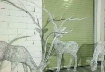 不銹鋼戶外創意鏤空低頭吃草鹿雕塑