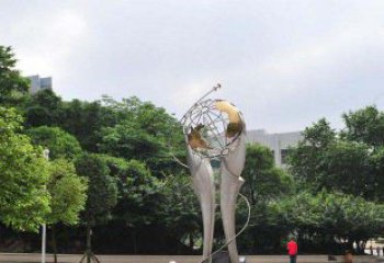 • 地球儀標志不銹鋼標志雕塑傳達和諧與愛的美好信息