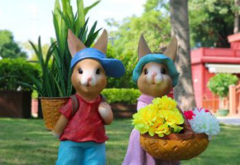 可愛小兔子玻璃鋼雕塑,點綴園林景觀