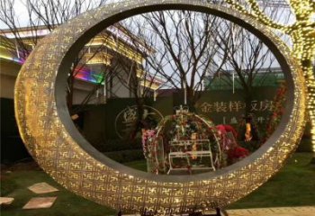 大型鏤空不銹鋼戶外圓環(huán)擺件