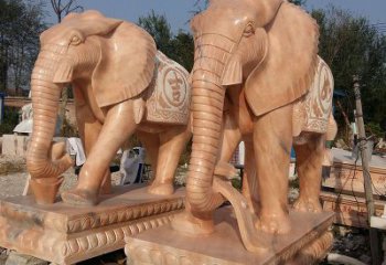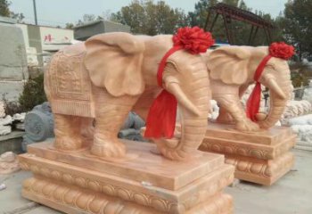 吸財納福別墅小區大型晚霞紅大象雕塑