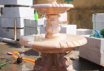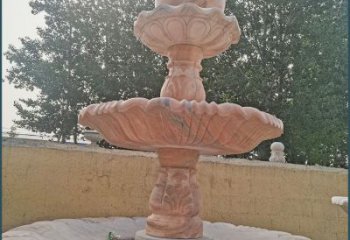 紅大理石石雕園林噴泉,展現絢爛晚霞