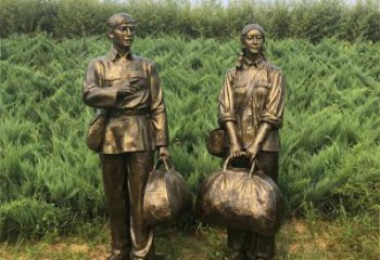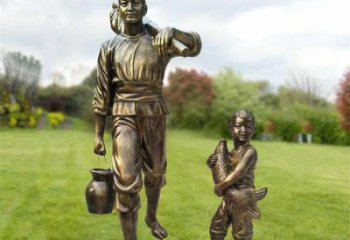 仿銅鑄造扁擔(dān)情景小品雕塑是一款以農(nóng)民挑扁擔(dān)為原型,以銅鑄造而成的仿真雕塑,具有精美的造型,精致的細節(jié),給人以精致、溫馨的感受。