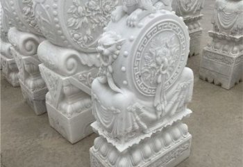 在雕刻風(fēng)格上,浮雕以淺層透雕與平面雕為主,漢白玉門墩雕塑明顯,刀法融精致于古樸大方,也有清代石雕的細(xì)膩繁瑣。漢白玉門墩雕塑自古以來會在大門外放置各獸類或石鼓用來鎮(zhèn)宅。主要用于辟邪、納祥,兼有裝飾功能。吉祥門墩雕塑有鎮(zhèn)宅石獅、坑頭石獅子、端獸、門墩石、抱鼓、拴馬樁、泰山石敢當(dāng)?shù)取?/p>
