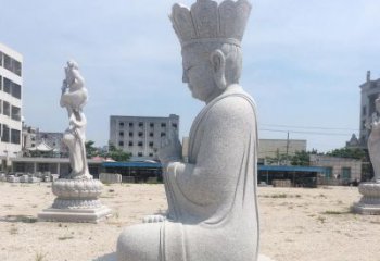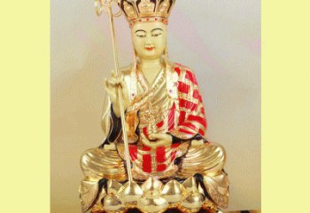 而大型地藏王雕塑則多為光頭或是頭戴毗盧冠,身披袈裟的出家僧人之相。藝術(shù)精美地藏王雕塑持錫杖,一手持蓮花,或是手持幡幢、寶珠等。藝術(shù)精美大型地藏王雕塑還常有以一頭形似獅子的怪獸為坐騎的,名號曰:或。寶珠地藏,大型地藏王雕塑持寶珠,右手結(jié)甘露印,專門救度餓鬼道。