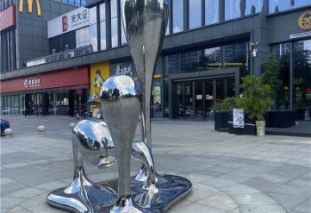 這是一座不銹鋼材質(zhì)的抽象景觀雕塑。雕塑整體呈現(xiàn)出水滴飛濺的動態(tài)形態(tài),底部是一顆藍色球體,仿佛水滴包裹著球體,以流暢且富有動感的線條,營造出極具視覺沖擊力的藝術(shù)效果,為所在空間增添靈動與活力。